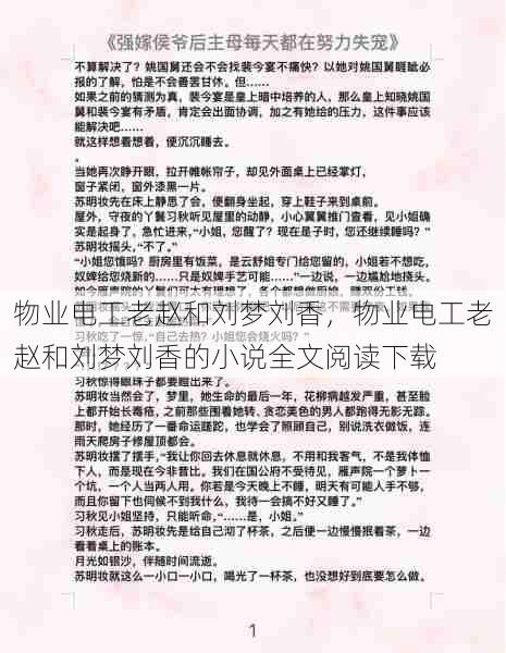 物业电工老赵和刘梦刘香,物业电工老赵和刘梦刘香的小说全文阅读下载