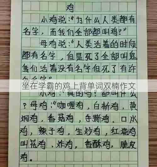 我们需要理解这一表达背后的文化背景和象征意义。在中文网络文化中,“学霸”这一词汇通常指的是在学术上取得优秀成绩的人,他们往往具备超强的自律性、时间管理能力以及高效的学习方法。而“坐在鸡上背单词”则是一个形象的比喻,暗示了通过非传统方式取得学习成绩的努力。这里的“鸡”可能象征着一种看似简单但又充满挑战的学习方式,意味着在不按常理出牌的情况下,学霸依然能够高效地完成任务。